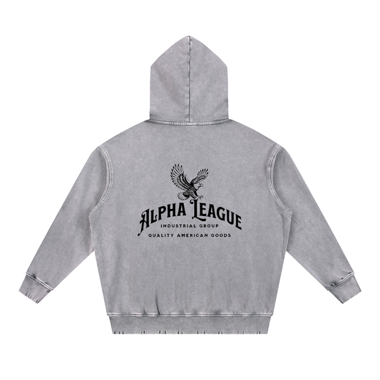 ALPHA LEAGUE GREY SNOW WASHED HEAVYWEIGHT HOODIE